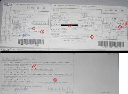 Con ese papel completado y ya aterrizados en Japón, seguiremos el corriente humano hasta llegar a la zona de aduanas donde hay que esperar una cola interesante, siempre de uno en uno. Después de mirar vuestro pasaporte y el papel rellenado, os pedirán amablemente que pongáis vuestros dedos indice en una máquina que tienen al lado de la ventanilla y que miréis hacia una cámara que tiene encima (vaya, que no cogen las huellas y nos hacen una foto). Después saldremos a la zona de la recogida de maletas, y ya con ellas en la mano nos faltará pasar un último control, donde una vez más mostraremos el pasaporte.