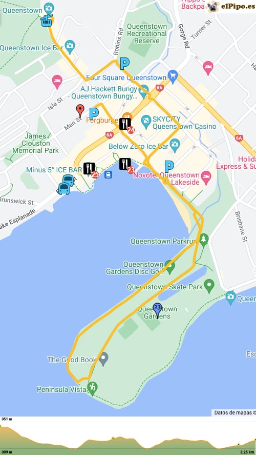 Lo primero que haremos será ir a disfrutar de las vistas de la ciudad desde lo alto, y para ello, nos montaremos en el Skyline Queenstown (350m, 5m):